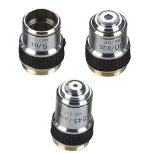 Lot de 3 objectifs DIN achromatiques compatibles avec les microscopes XSP-62, XSP-63 et XSZ-70B.